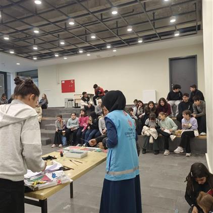 TDV Kadın Kolları Kuzulimanı Mah. Başkanı Ayşenur Özçelik, Gökçeada Ortaokulu’nda Filistin temalı ebru çalışması etkinliği düzenledi.