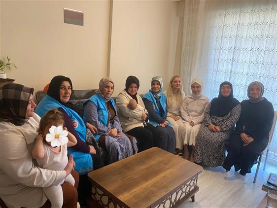 Merkez Kuran Kursu Öğreticisi Güllü Kazancı, TDV Kadın Kolları Başkanı Asiye Karakuş ve Kuzulimanı Mahallesi Temsilcisi Ayşenur Özdil Özçelik ile birlikte Kuzulimanı Mahallesi'nde ikamet eden Hakan ve Sevde Tapan ailesinin yeni dünyaya gelen bebeği için Mevlid-i Şerif programı icra ettiler.