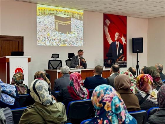 Çanakkale İl Müftüsü Mevlüt TOPÇU, İl Müftü Yardımcısı Dr. Nimet KESELİ USTABAŞI, İl Müftü Yardımcısı Kamil TUNCEL ve İl Müftü Yardımcısı Muharrem DUTAR, İl Müftülüğü toplantı salonunda hacca gidecek vatandaşlara yönelik hac semineri gerçekleştirdi. Seminerde hac ibadetinin önemi, usul ve esasları hakkında bilgiler verilirken, adayların ibadetlerini bilinçli ve huzurlu bir şekilde yerine getirmeleri için önemli tavsiyelerde bulunuldu.